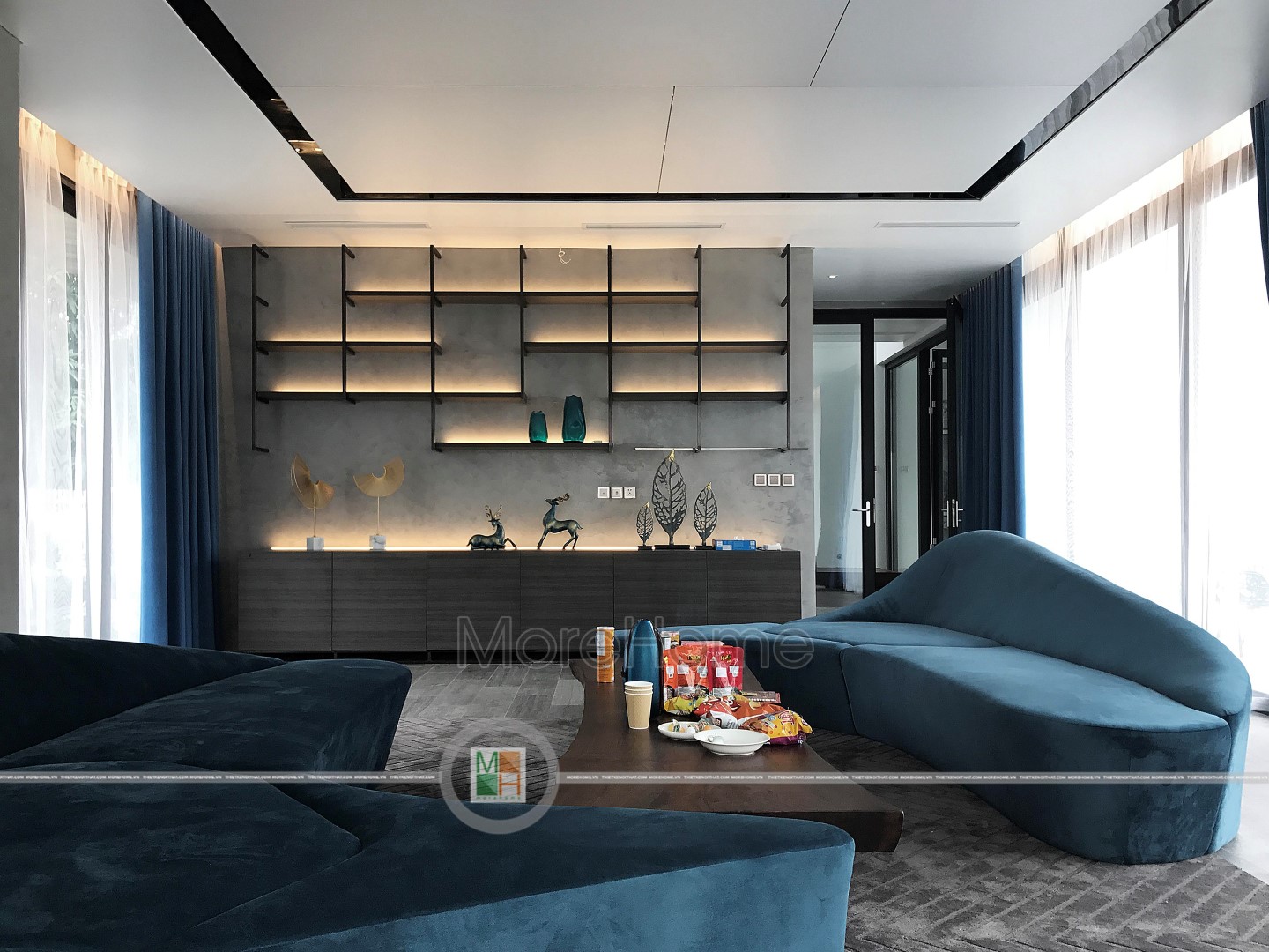 Khu vực phòng trà riêng tư được thiết kế với bộ sofa dộc đáo, đường nét mềm mại, uyển chuyển, tôn lên vẻ đẹp hiện đại