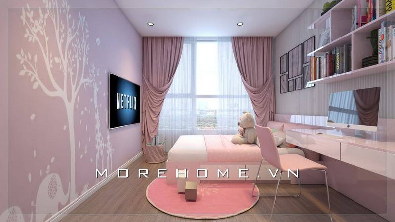Thiết kế phòng ngủ con gái đầy ấn tượng, nội thất được bố trí khoa học, hợp lí giúp con tiện nghi hơn trong quá trình nghỉ ngơi, sinh hoạt hàng ngày
