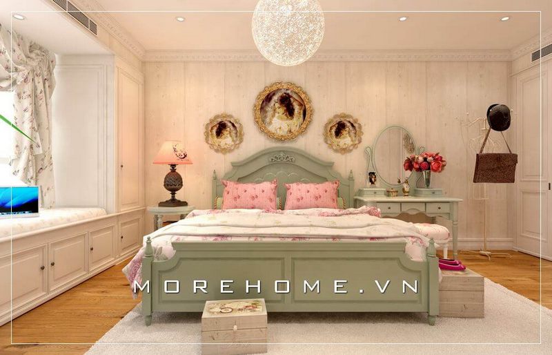 Trang trí phòng ngủ con gái ấn tượng với chiếc giường ngủ tân cổ điển đẹp mắt