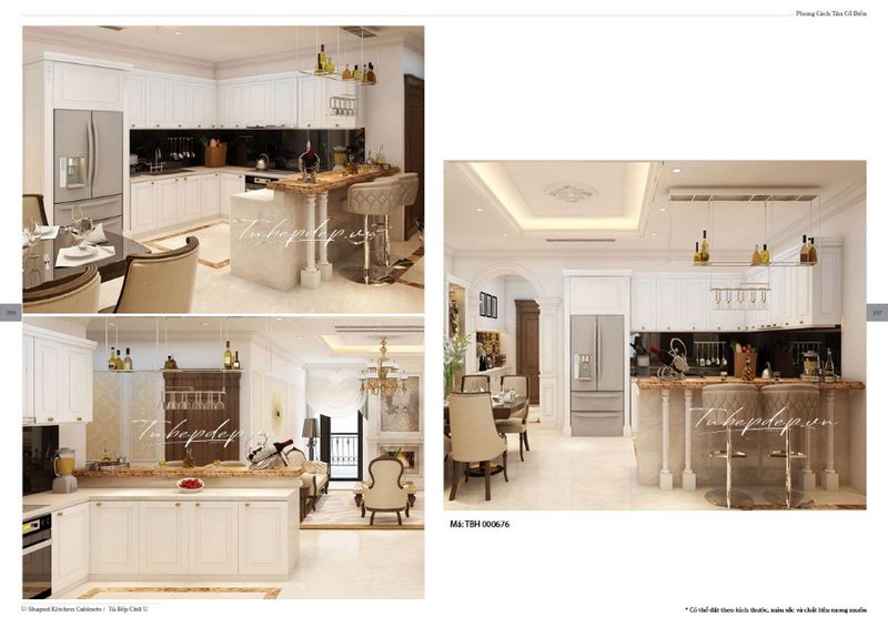 Bố trí tủ bếp màu trắng mang sự nhẹ nhàng, tinh tế kết hợp kính ốp bếp đen tạo hiệu ứng chiều sâu, 2 màu đối lập cũng tạo sự mới lạ cho người nội trợ trong biệt thự, nhà phố