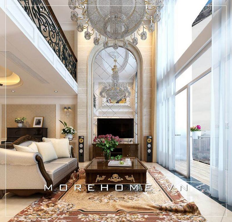 Bố trí nội thất phòng khách biệt thự cao cấp phong cách tân cổ điển sang trọng và đẳng cấp