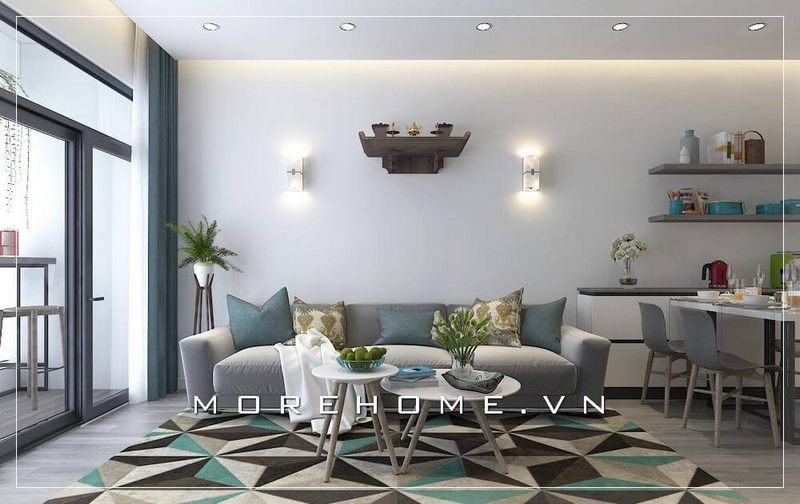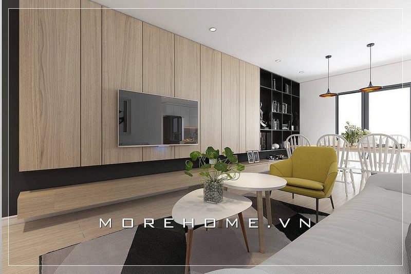 Bố trí nội thất phòng khách chung cư hiện đại được sắp xếp gọn gàng ngăn nắp và logic