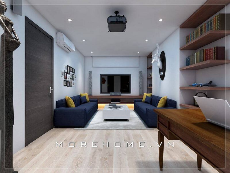 Thiết kế nội thất phòng khách hiện đại, tối giản đi những đường nét chi tiết mà tập trung vào công năng sử dụng, mang lại không gian tiếp khách trẻ trung, năng động mà sang trọng