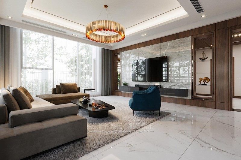 Mẫu thiết kế biệt thự hiện đại với nội thất hiện đại cao cấp cho không gian phòng khách sang trọng và đẳng cấp