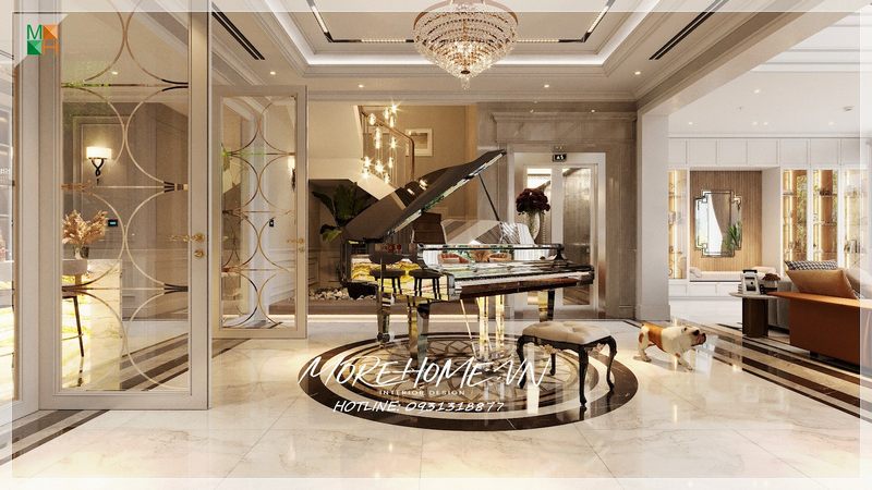 Thi công sảnh phòng khách biệt thự tân cổ điển vinhomes imperia Hải Phòng