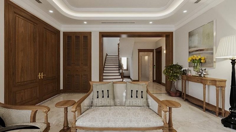 Thiết kế cầu thang gỗ óc chó sang trọng cho căn hộ duplex thanh xuân hà nội